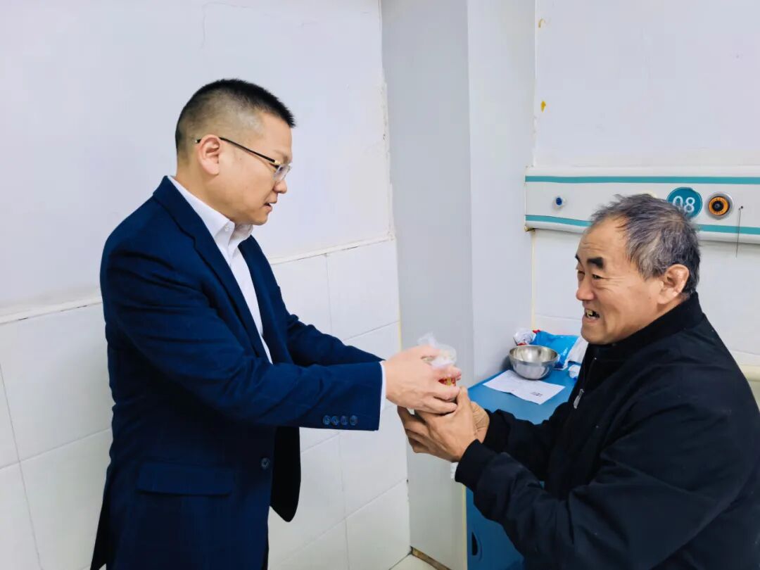 内科住院病区内,温情在走廊间流淌。孙院长将满载祝福的腊八粥递到内科患者及家属手中,轻声叮嘱“腊八安康,趁热喝”,同时细心询问患者的身体恢复情况,祝愿大家早日康复。