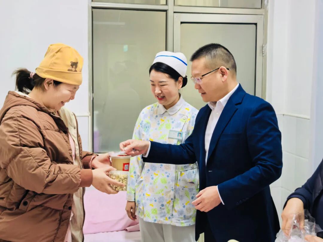 “没想到在医院里也能过上腊八节,这碗粥喝着太暖心了!”产科病区里,产后三天的宝妈从武院长手中接过腊八粥,脸上满是惊喜,软糯香甜的粥品驱散了冬日的寒意,真挚的节日祝福拉近了心与心的距离。