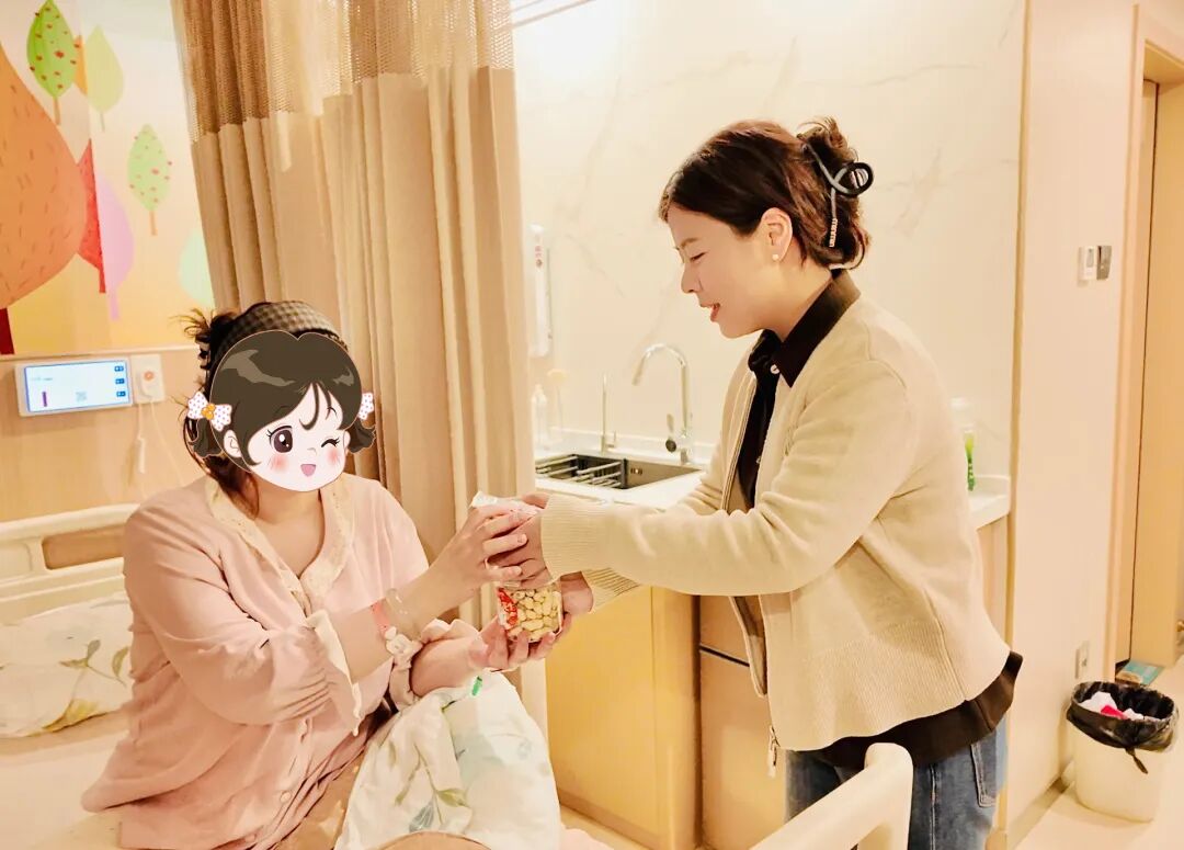 家化病区内,宫院长将寓意吉祥的“好事花生”轻轻放在孕妈手中:“愿您好事‘花生’,平安顺遂。”孕妈笑道:“这寓意真好!”