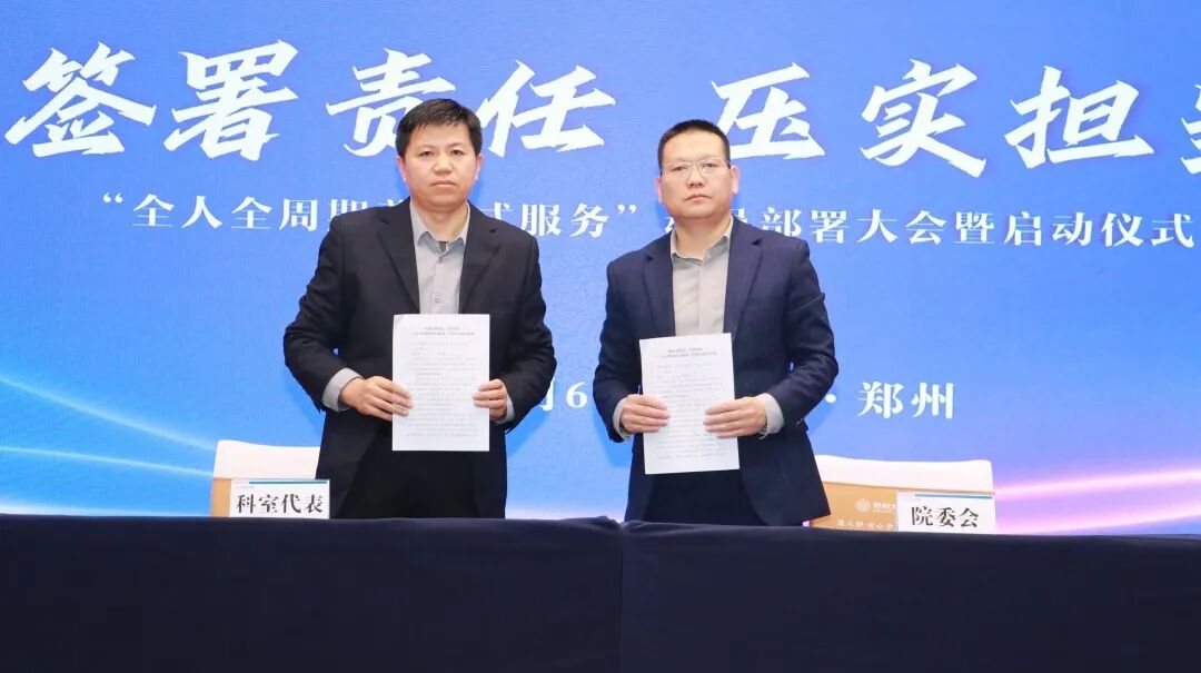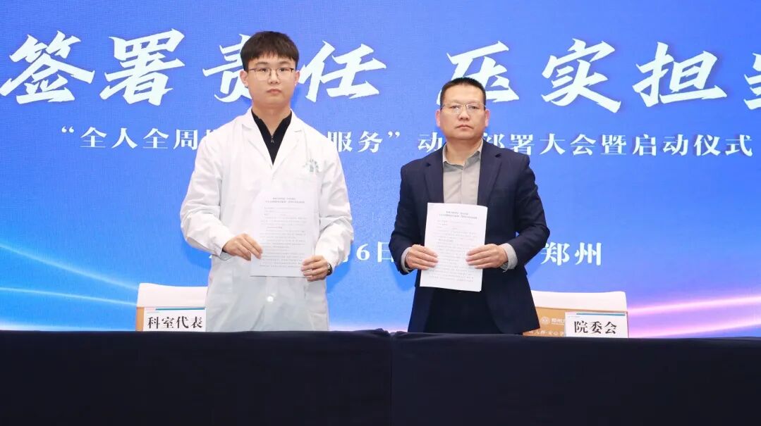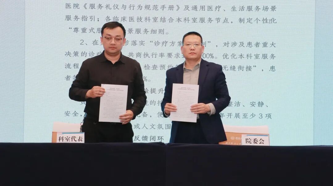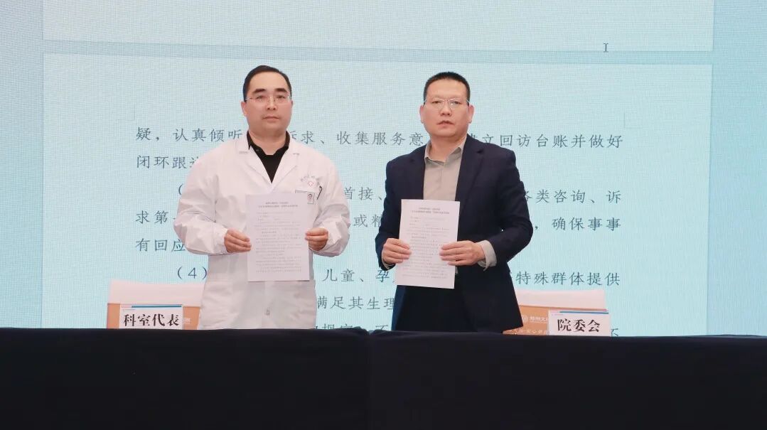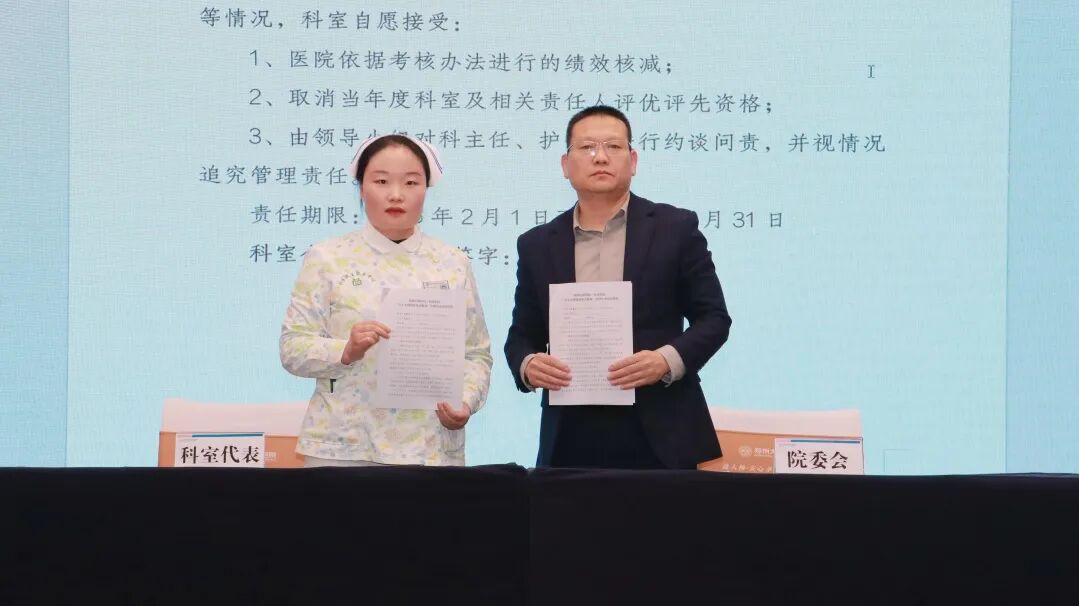 院领导与各科室、社区中心代表共同签订《服务质量目标责任书》。