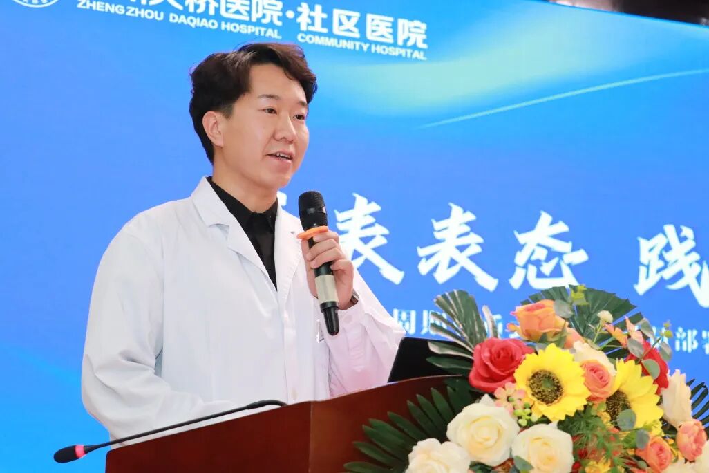 郑州大桥医院兼社区医院院长孙保锋作动员部署讲话。他指出,推行 “全人全周期尊重式服务” 不仅是服务的升级,更是医院文化的重塑与核心竞争力的打造,是实现高质量发展、塑造卓越品牌的必然选择。