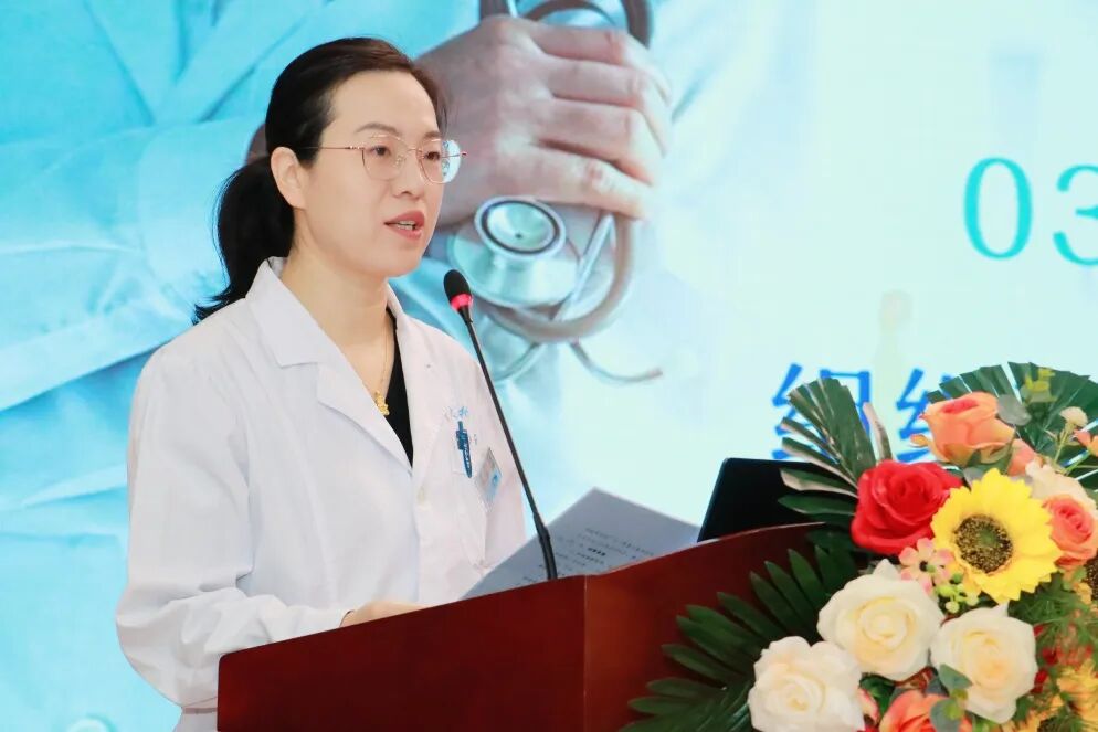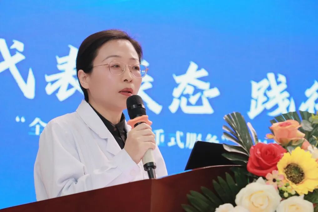 郑州大桥医院业务副院长宫红梅宣读《“全人全周期尊重式服务”管理年活动实施方案》。