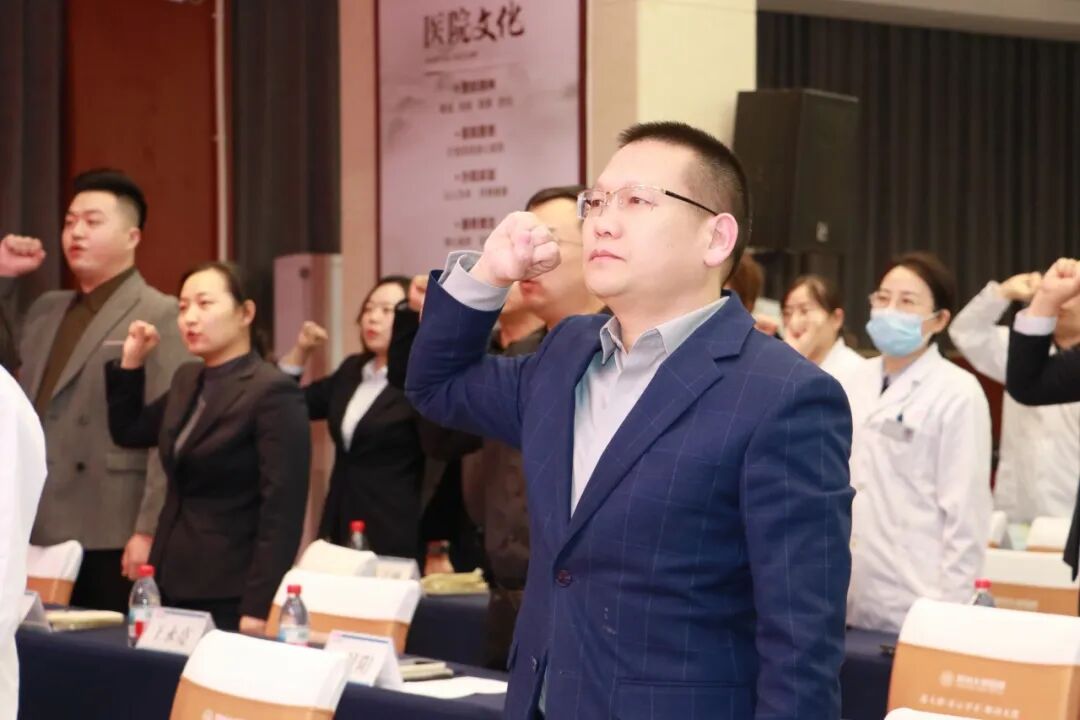 全体参会人员在孙院长的带领下庄严宣誓。同一份誓词,同一个方向,汇聚成郑州大桥医院及社区医院对患者、对社会的郑重回答,也凝聚成全院上下同心同行的精神旗帜。